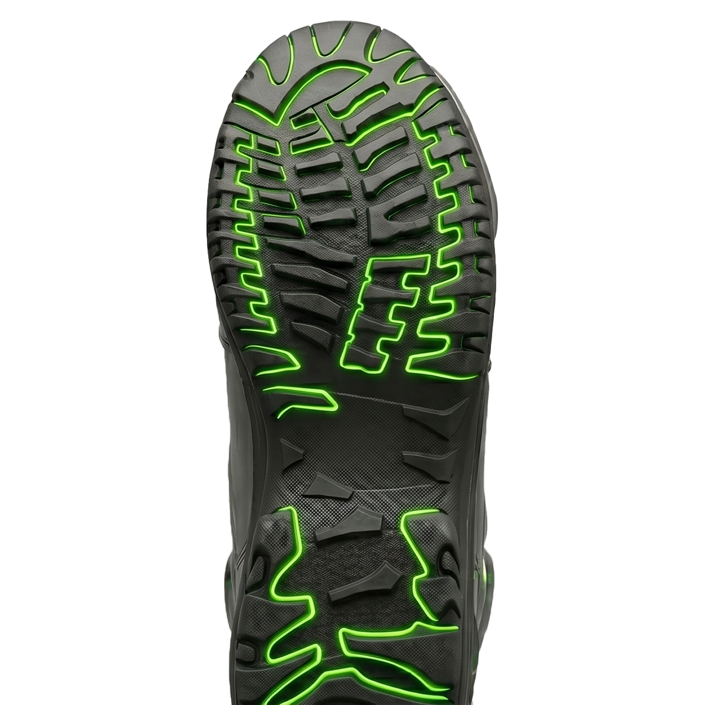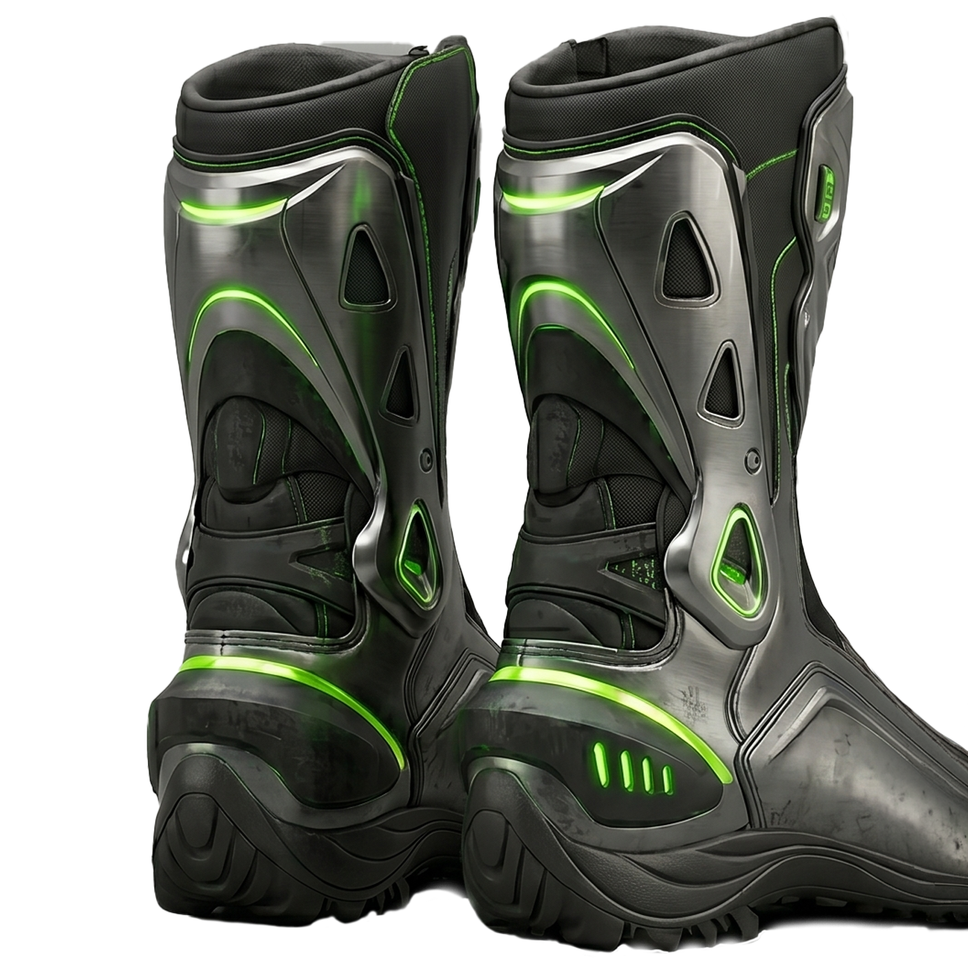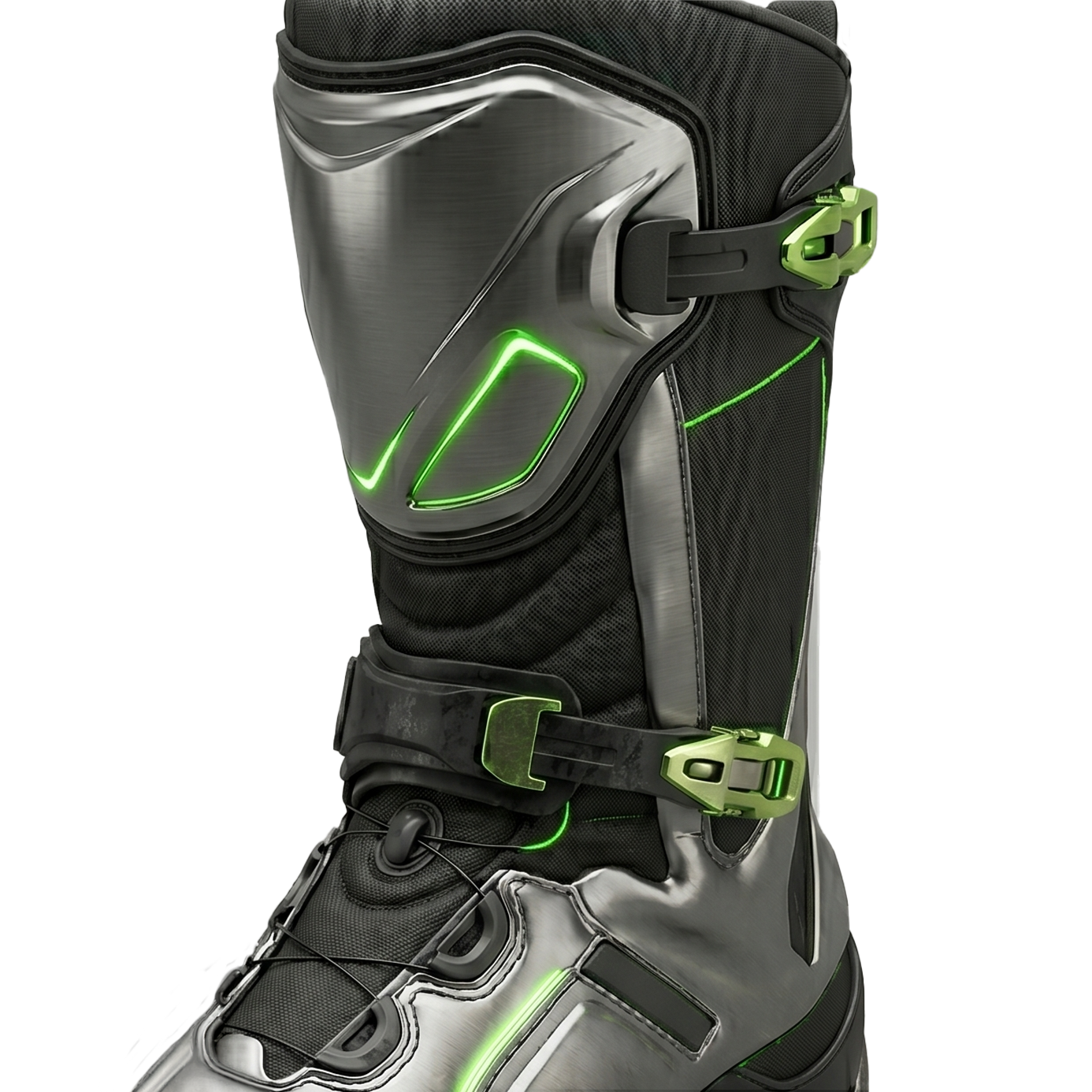 Highly protective neon boot with metal armor details, reinforced structure, and a high-traction riding sole.